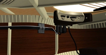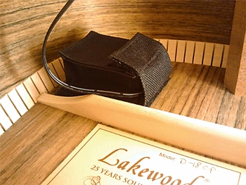 The L.R.Baggs Anthem System includes a control unit which is located under the sound board at the sound hole by means of three permanently elastic adhesive pads.