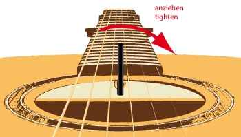 Tuners without a housing (open) are secured by a bearing tube. By applying lateral pressure, check whether this tube is loose. If so, remove it with your fingernail. Then apply a small drop of domestic glue and re-insert it into position.