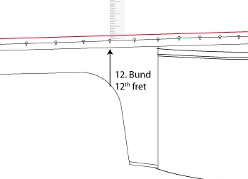 The measurement is done by comparison of the harmonic and the fretted note at the 12th fret. A harmonic arises by placing the fingertip on a string and then plucking the string while simultaneously lifting the fingertip. The overtones created by this technique arise only at certain points on the string, such as in this case, the exact midpoint being at 12th fret.